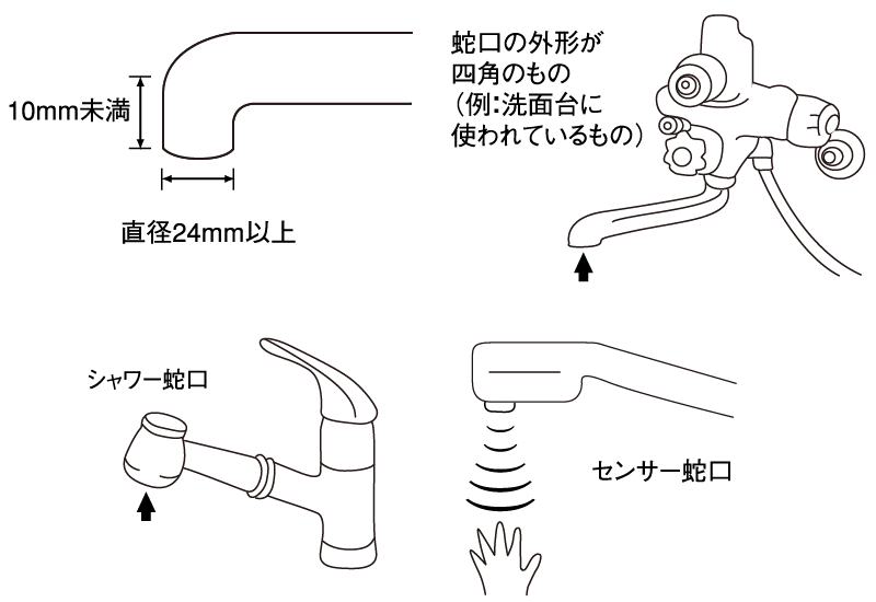 取り付けられない蛇口の例